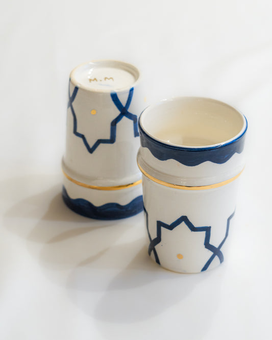 Plateau marocain blanc et bleu avec deux verres ZWAK