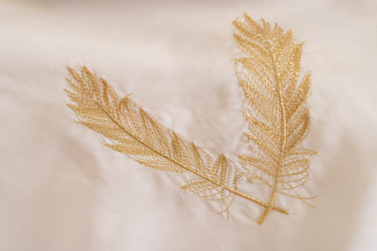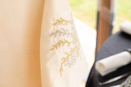 Nappe avec 12 serviettes ivoire brodée de fils d'or et d'argent