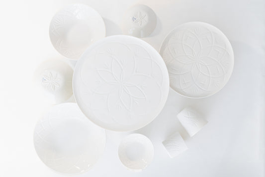 Assiette marocaine blanche creuse à relief en incrustation 24cm