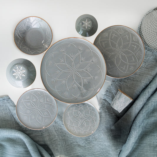 Assiette marocaine grise creuse à relief en incrustation 24cm