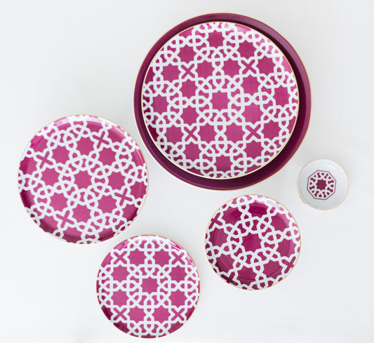 Plateau marocain à motifs bordeaux et blanc 18cm