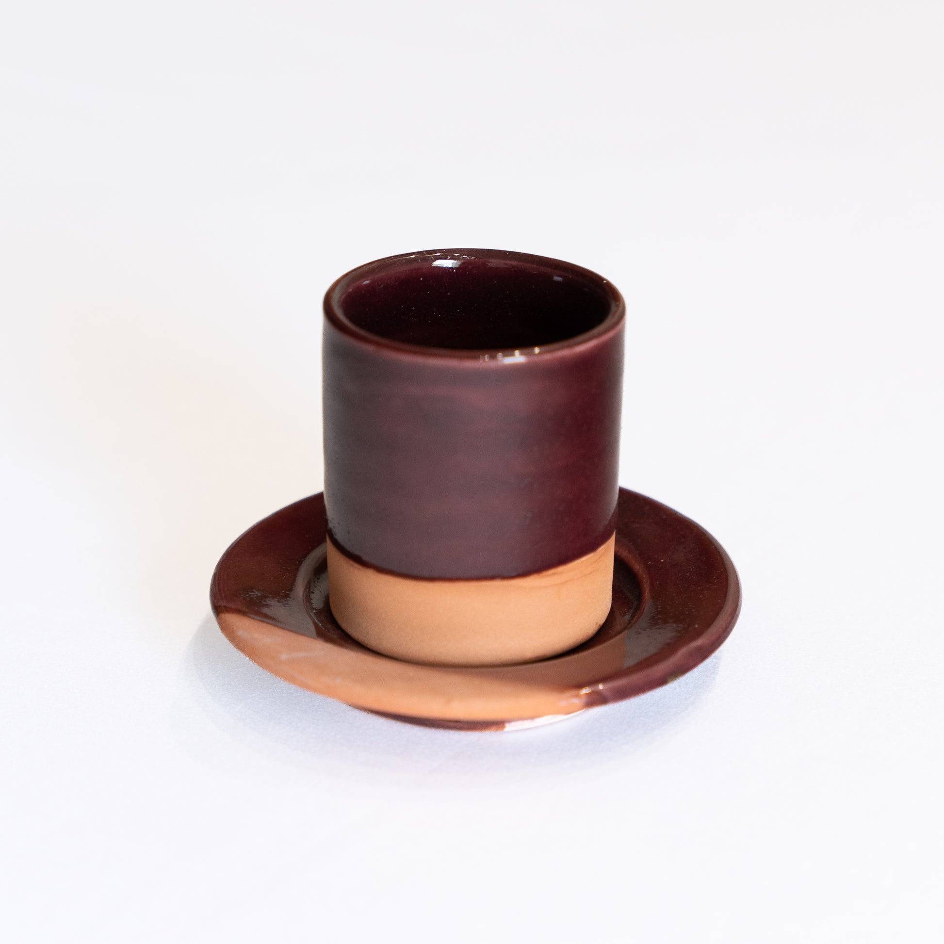 Cette tasse fusionne l'élégance intemporelle de la terre cuite avec une touche contemporaine de couleur vibrante.