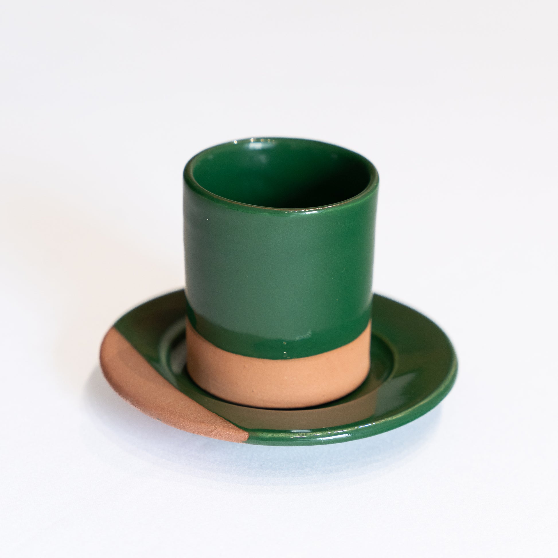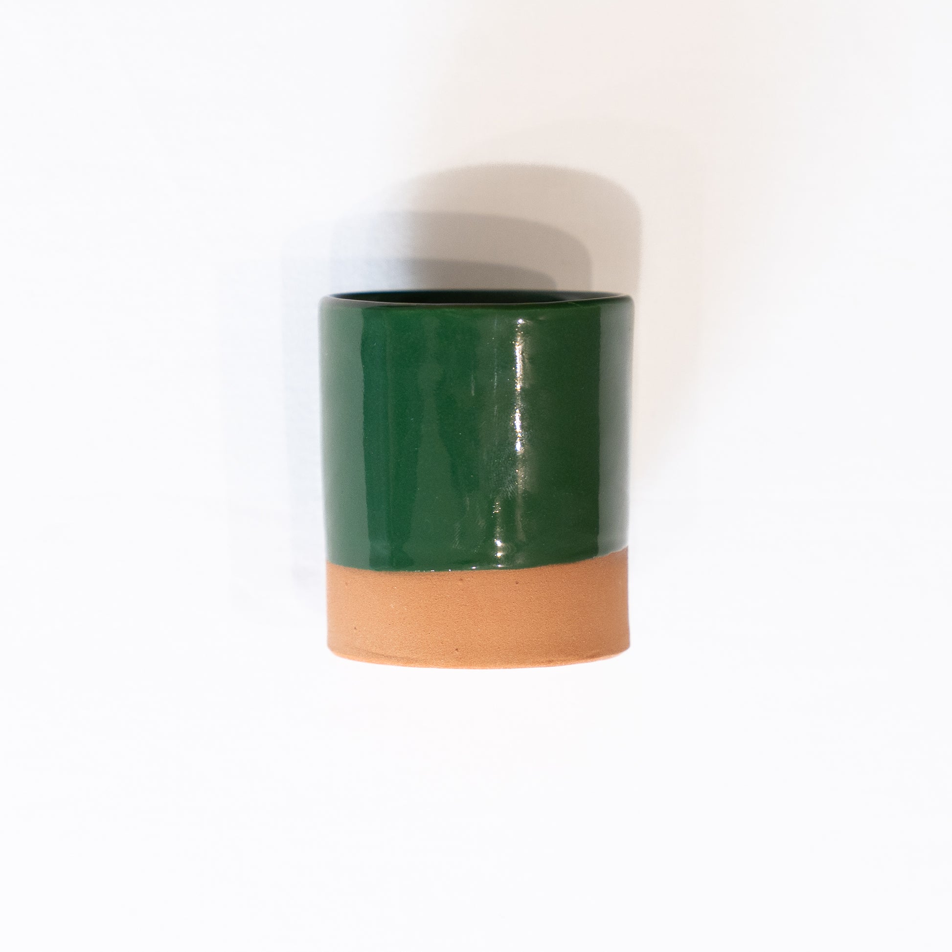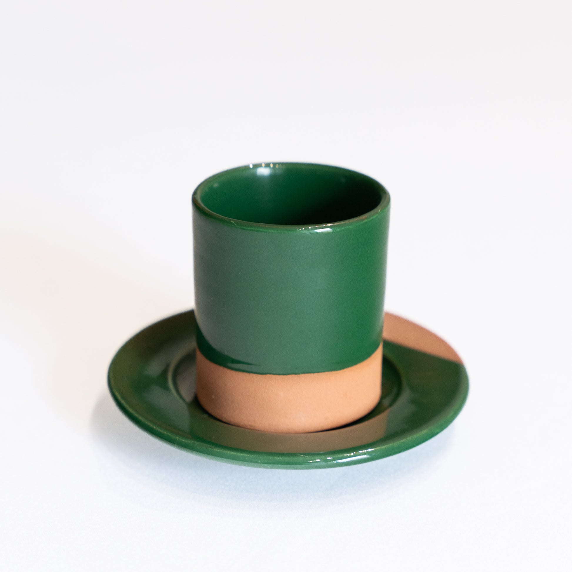 Cette tasse fusionne l'élégance intemporelle de la terre cuite avec une touche contemporaine de couleur vibrante.