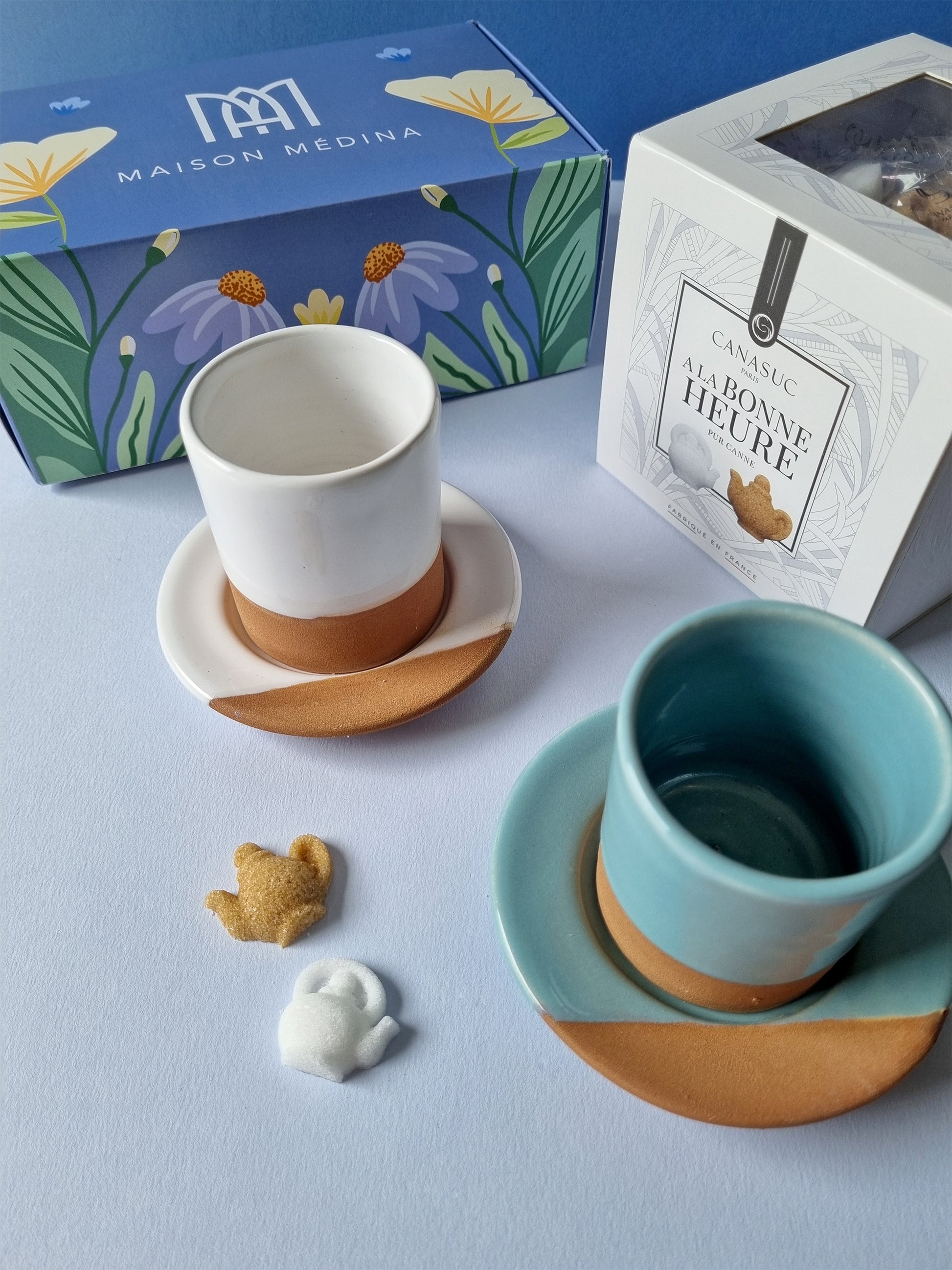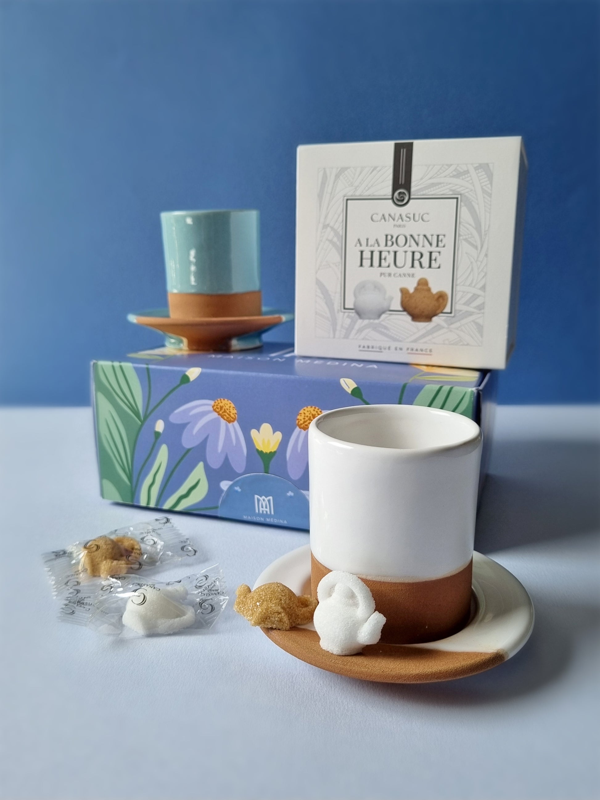 Découvrez l'élégance et le raffinement avec notre coffret exclusif en Edition limitée de deux tasses expresso artisanales signé Maison Médina.