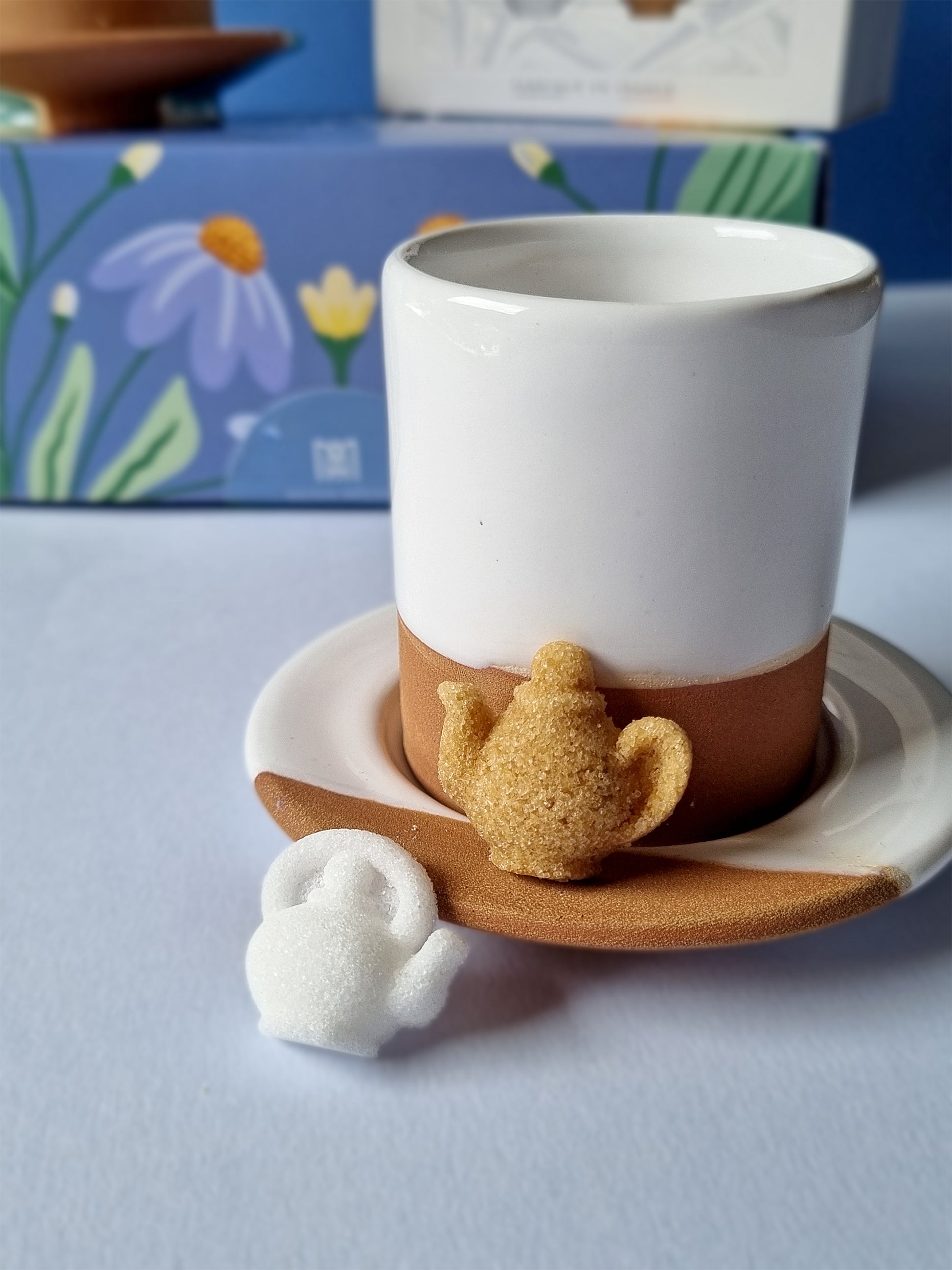 - Deux sucres en forme de théière fabriqués par Canasuc Paris
