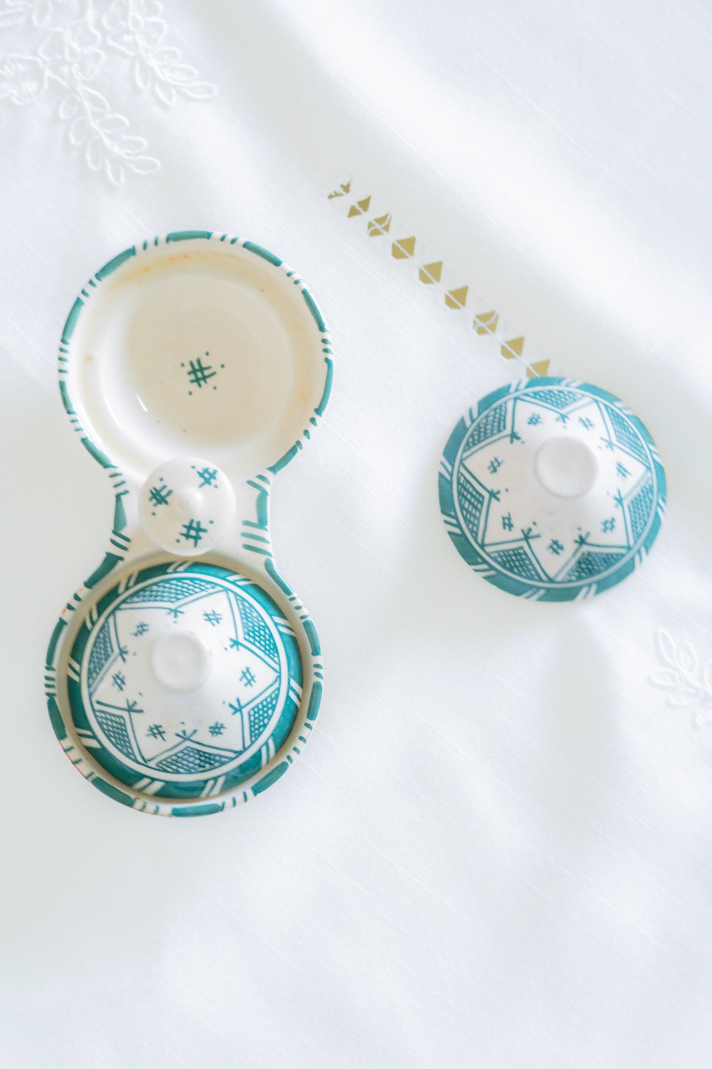 Les motifs de chaque salière sont peints à la main par des artisans marocains et inspirés de l'Andalousie, une région imprégnée de richesse culturelle et artistique.