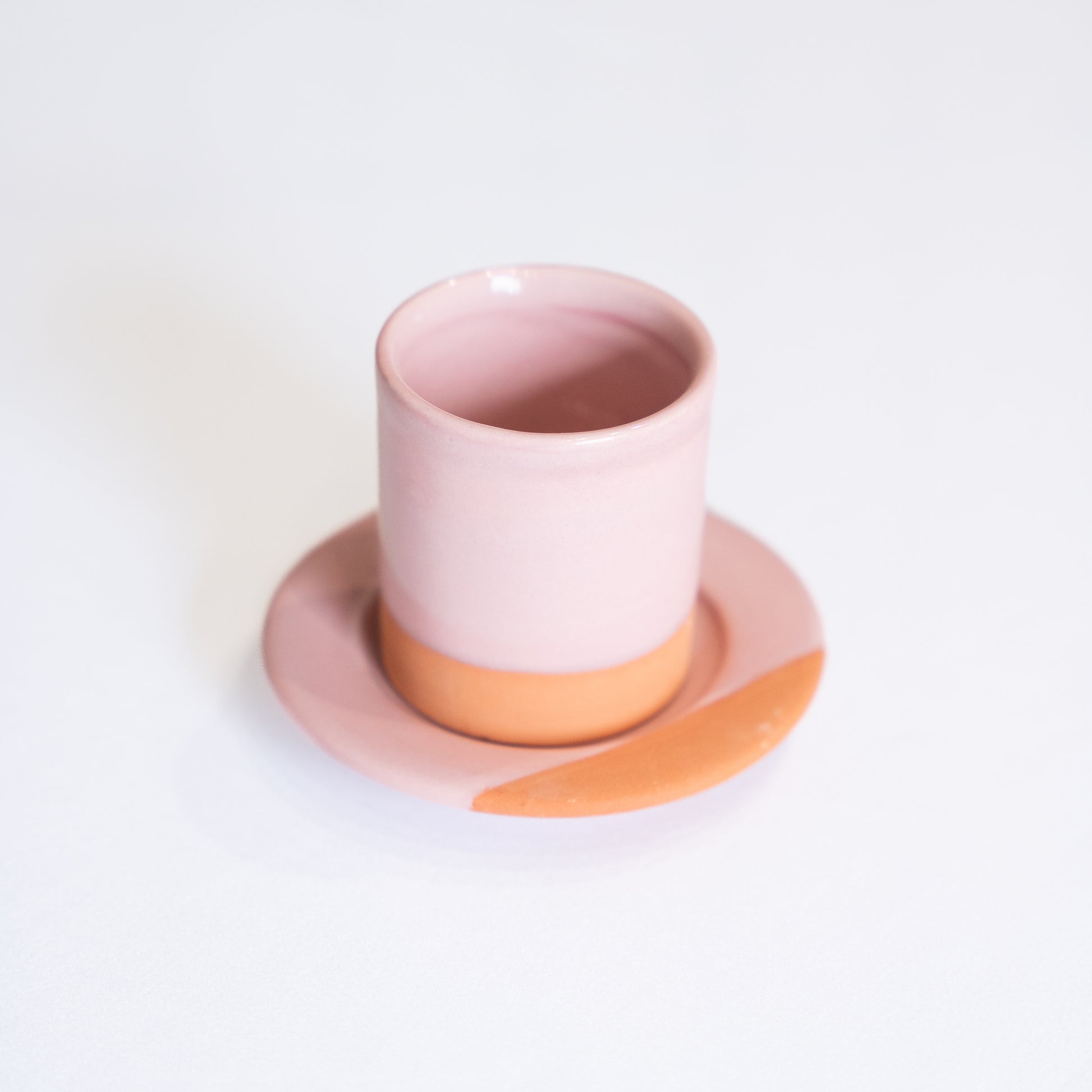 Cette tasse fusionne l'élégance intemporelle de la terre cuite avec une touche contemporaine de couleur vibrante.